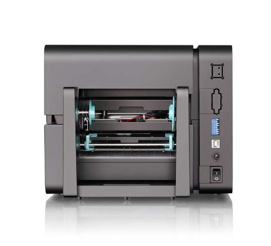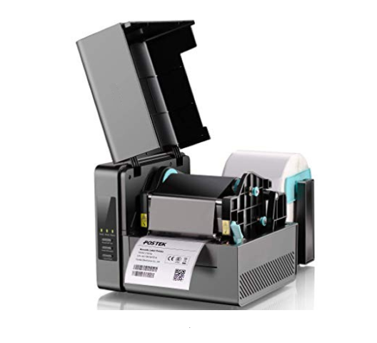 Imprimante code à barre Postek-EM-210-TT-Thermal-Transfer-Barcode-Label-Printer-back avec un support de rouleau d'étequette code barre et avec une garantie de 12 mois .
